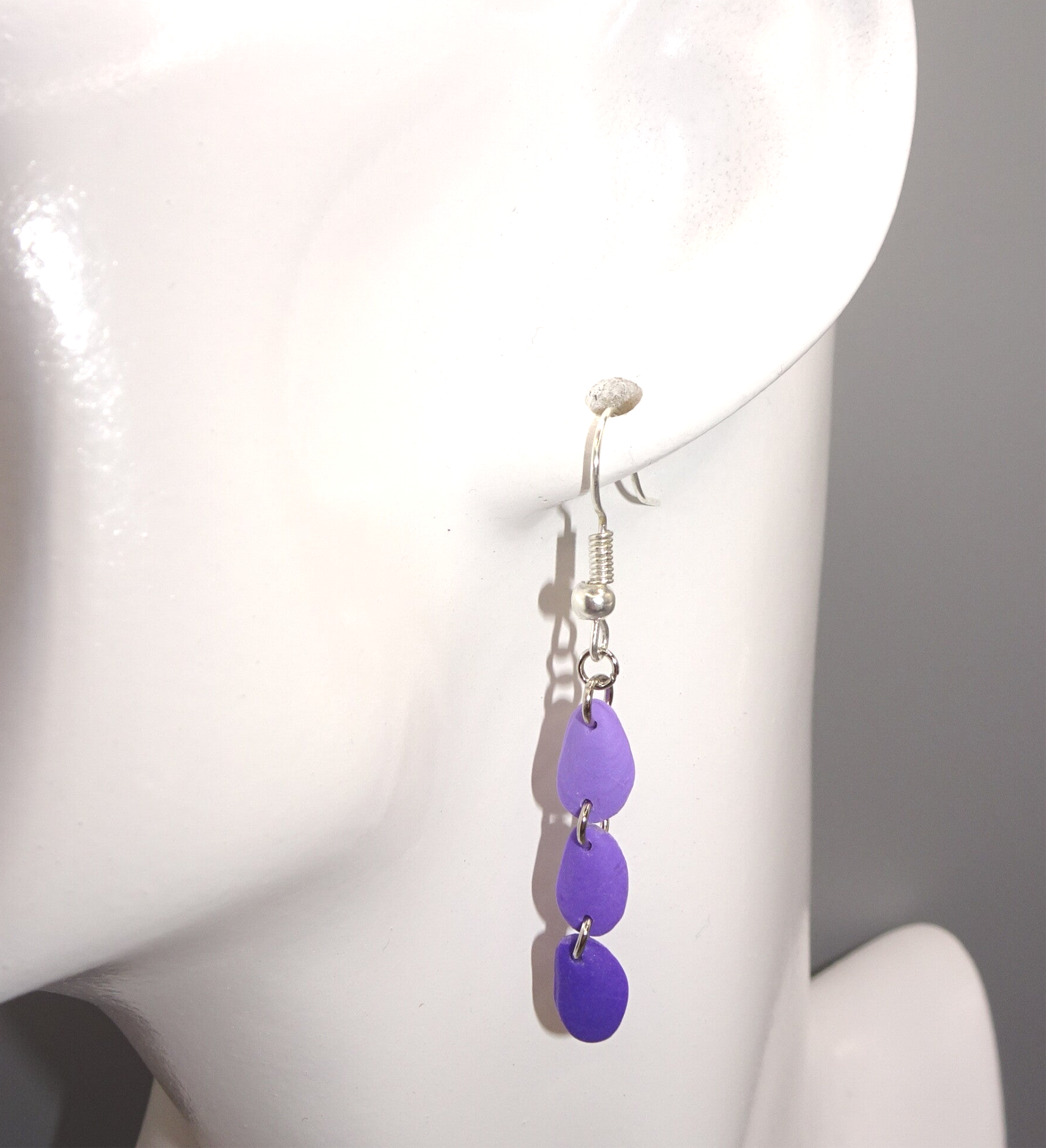 Leur couleur est dégradée, allant du violet au mauve, et elles sont montées sur des fermoirs en acier inoxydable 304 argentés.
