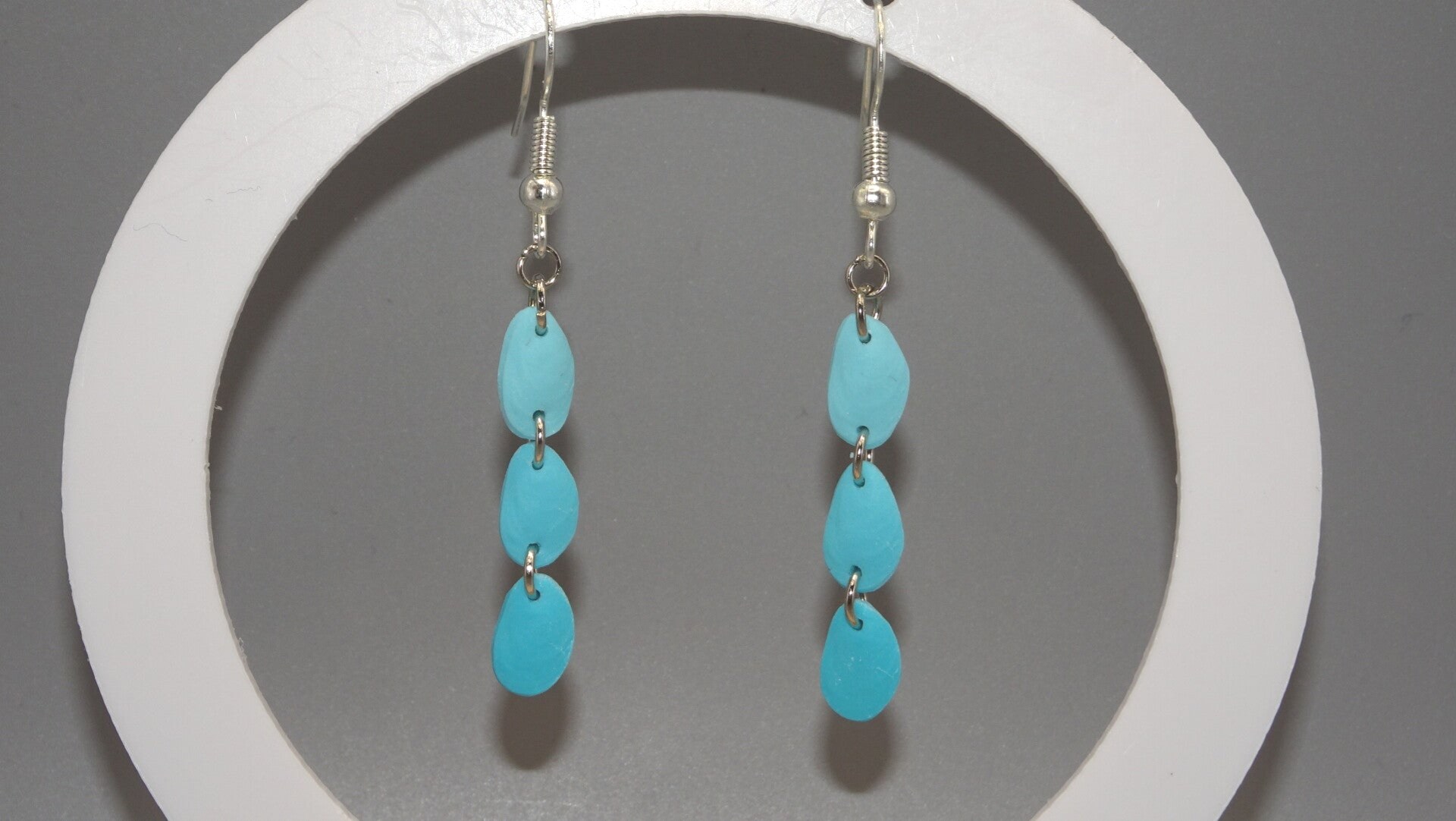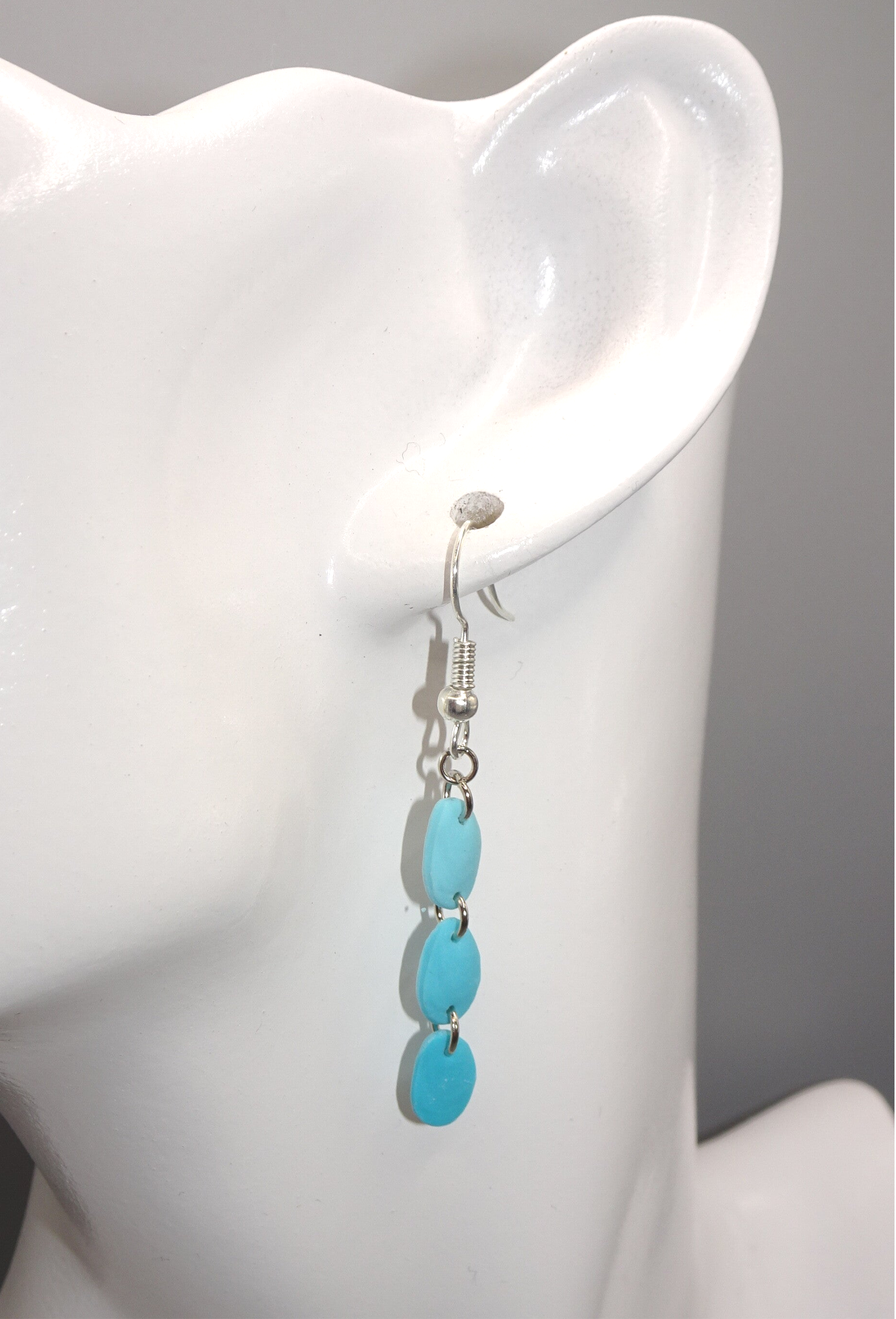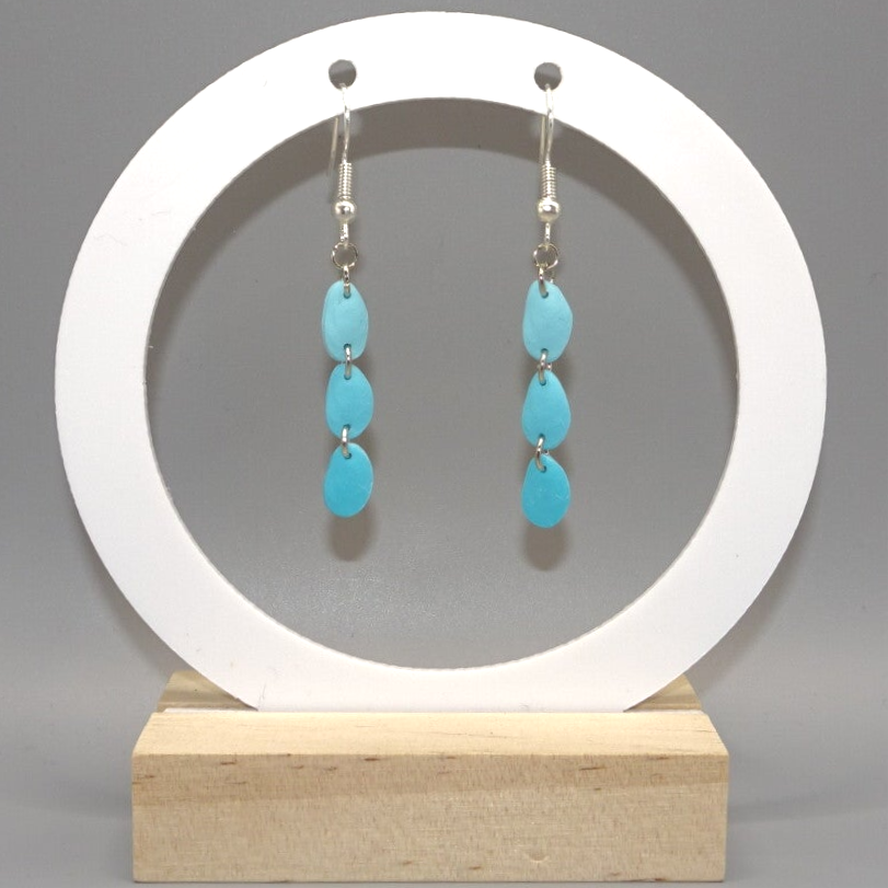 Leur couleur est dégradée, allant d'un bleu clair à un bleu plus foncé, et elles sont montées sur des fermoirs en acier inoxydable 304 argentés.