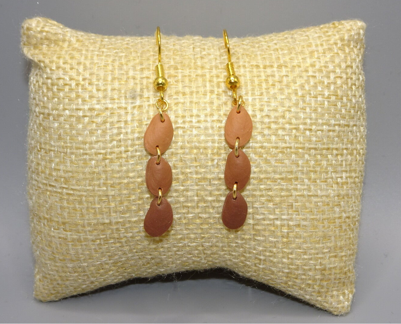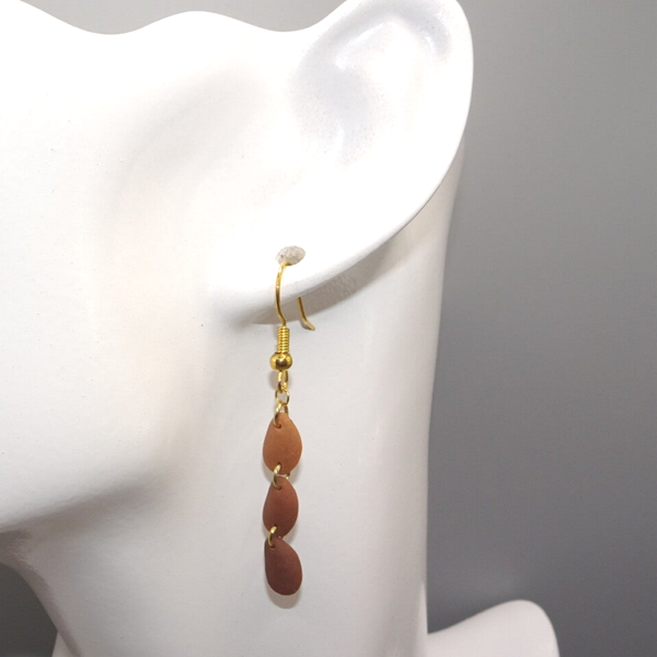 Leur couleur est dégradée, allant de marron clair à marron foncé, et elles sont montées sur des fermoirs en acier inoxydable 304 dorés.