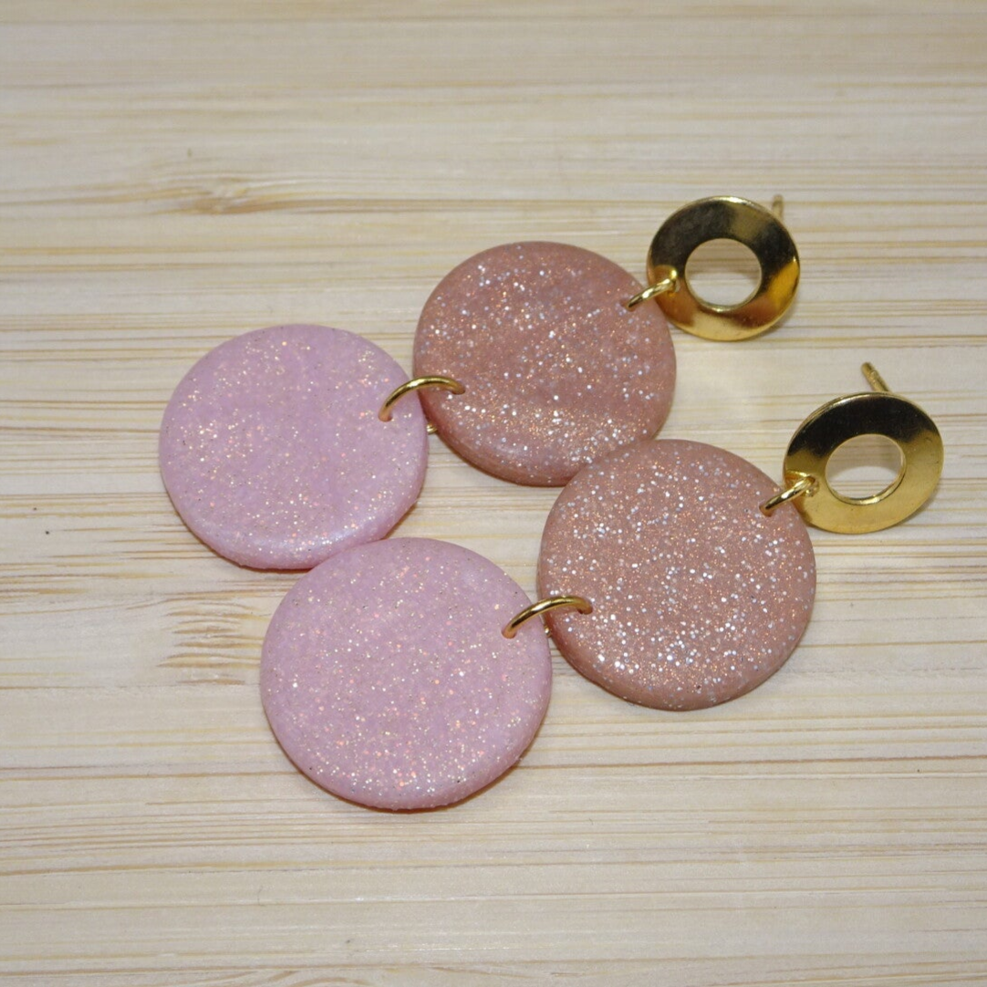 Le premier rond, est rose saumon pailleté, le second en bas, est d'une couleur rose plus clair pailleté.