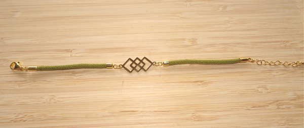 Bracelet avec un cordon réglable en coton et acrylique kaki.