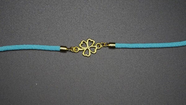 Bracelet avec un cordon réglable en coton et acrylique bleu ciel.