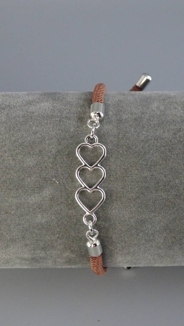 Bracelet avec un cordon réglable en coton et acrylique marron.
