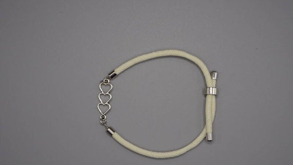 Bracelet avec un cordon réglable en coton et acrylique blanc.