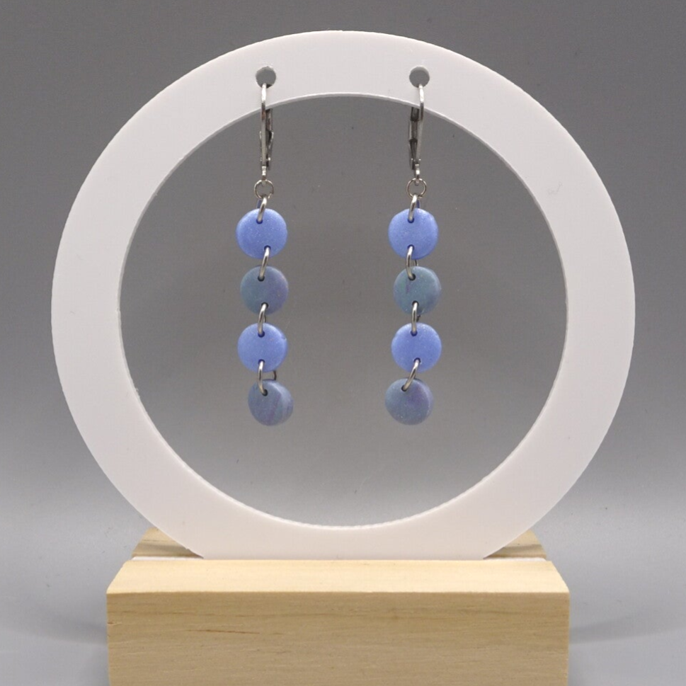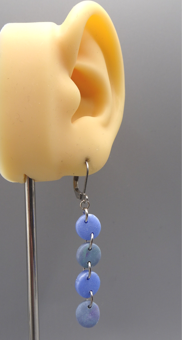 2 des 4 ronds sont de couleur bleue. Les 2 autres sont verts avec des traces de bleu et de rose.