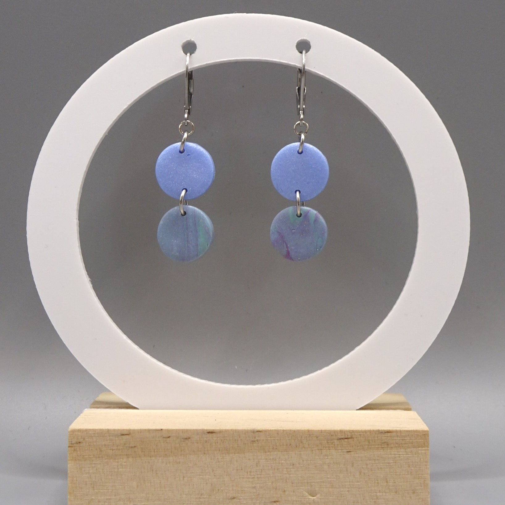 Le premier rond est de couleur bleue. Le second est un marbré de couleur verte, bleue et rose.