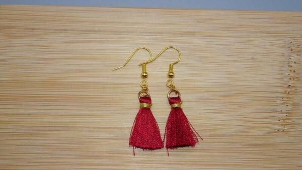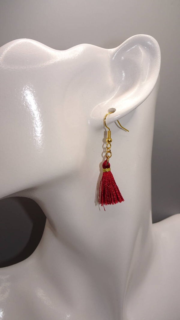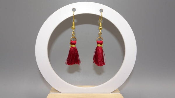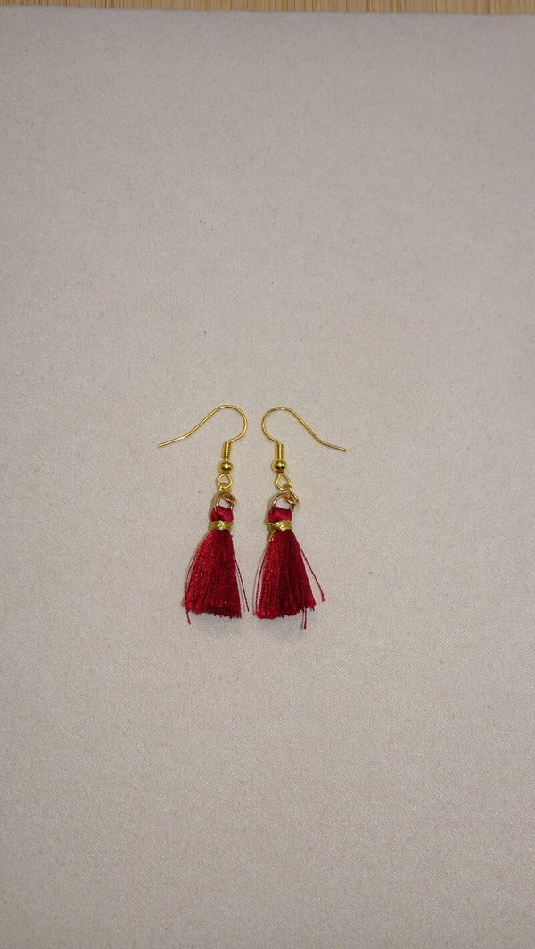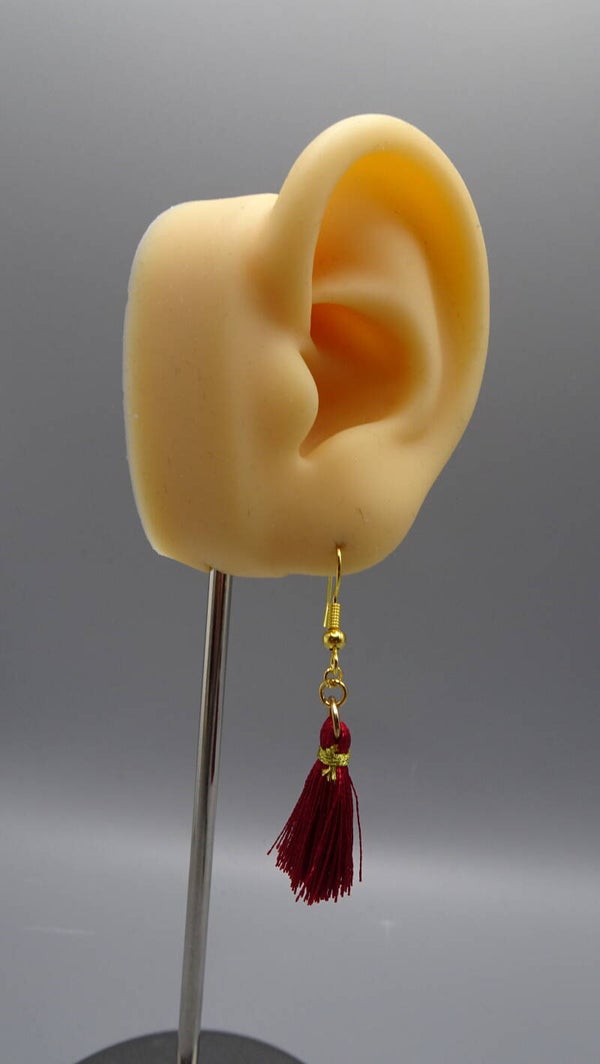 Boucles d'oreilles avec un ponpon de couleur bordeaux.