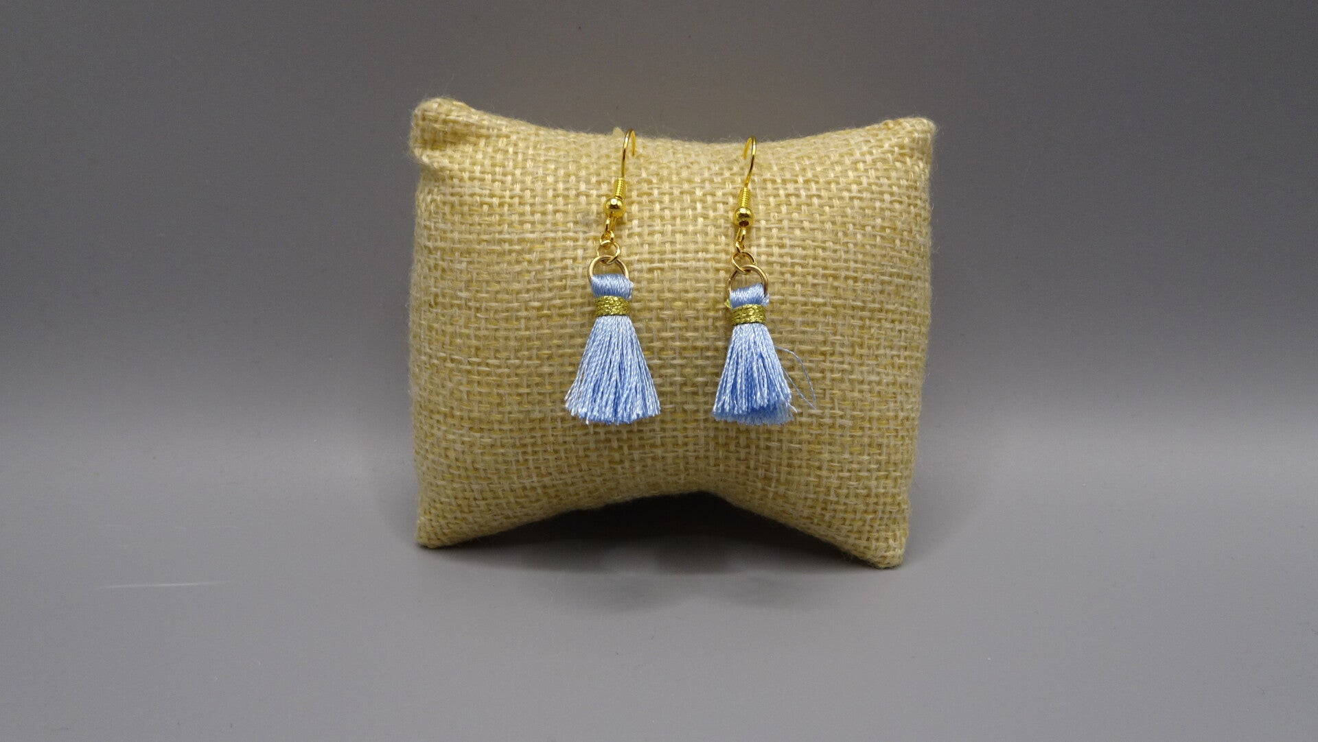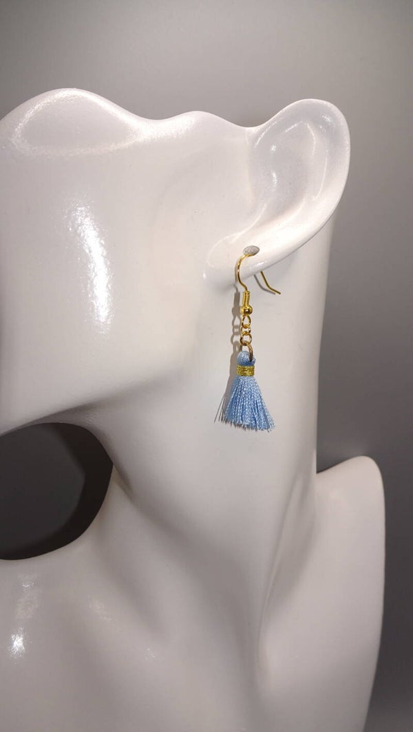 Boucles d'oreilles avec un ponpon de couleur bleue.