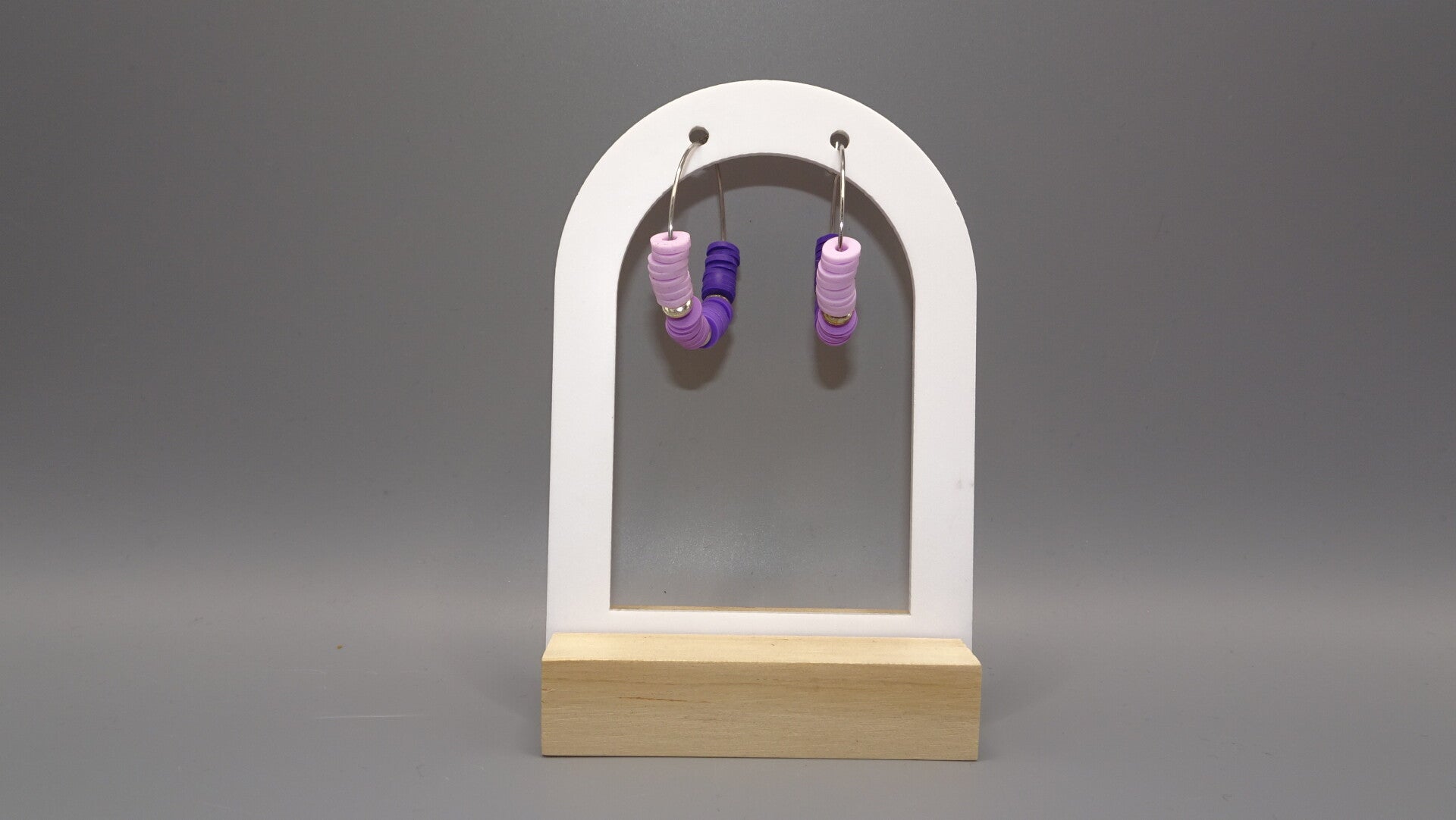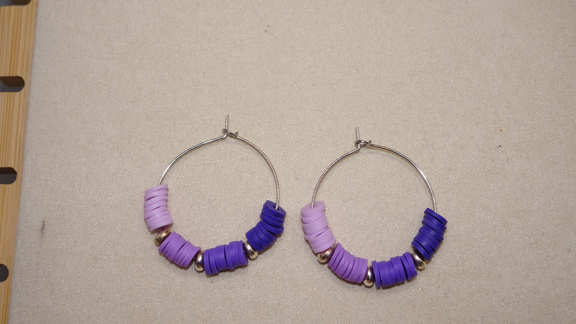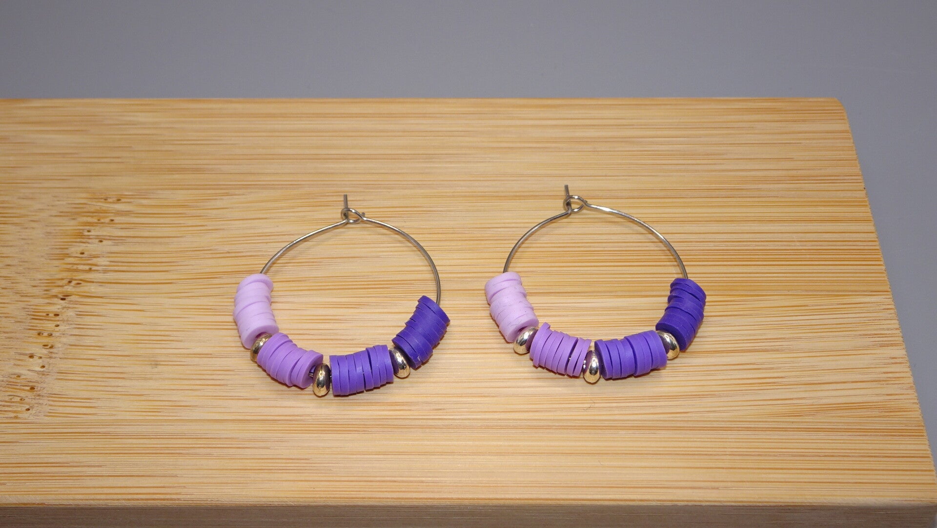Boucles d'oreilles avec des perles en dégradé de violet, mauve et lilas.