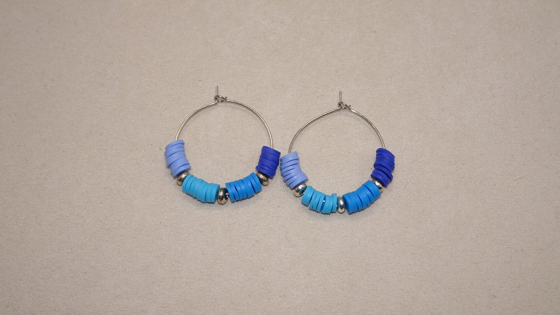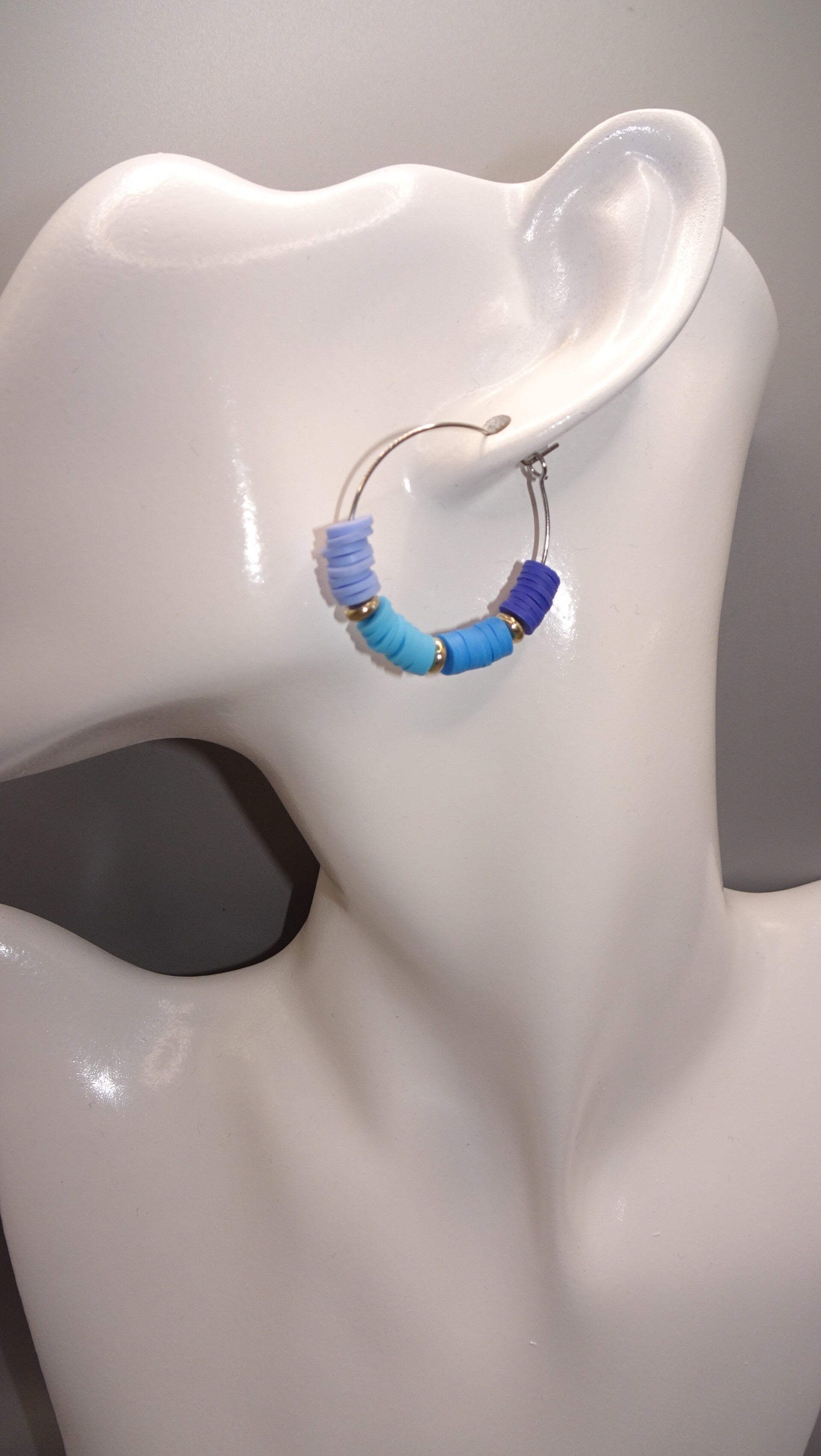 Boucles d'oreilles avec des perles en dégradé de bleu.