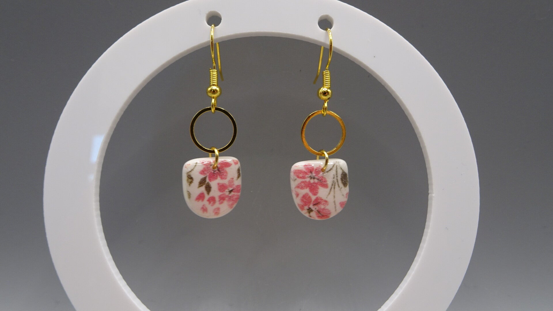 La base de la boucle d'oreille est blanche sur laquelle est superposé un motif liberty.
