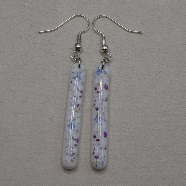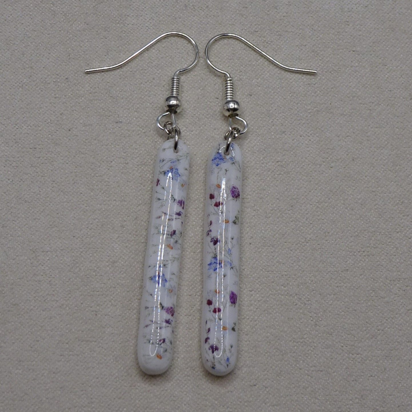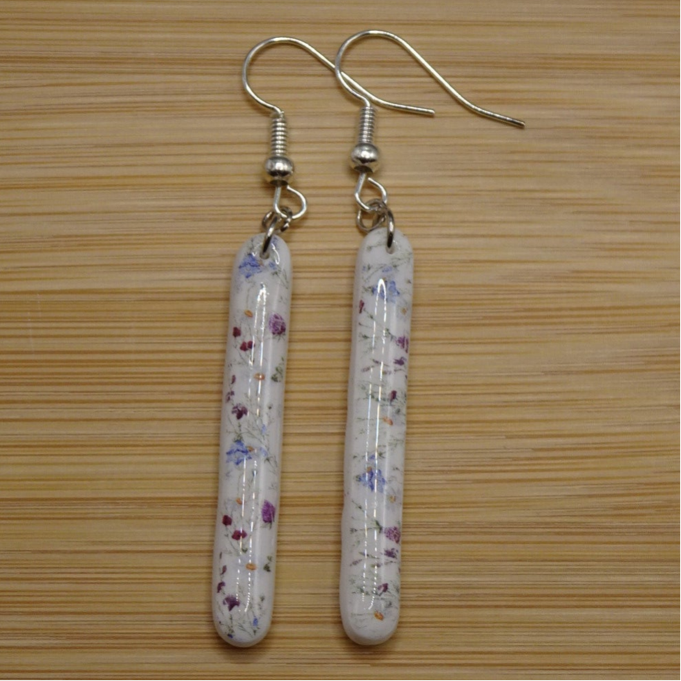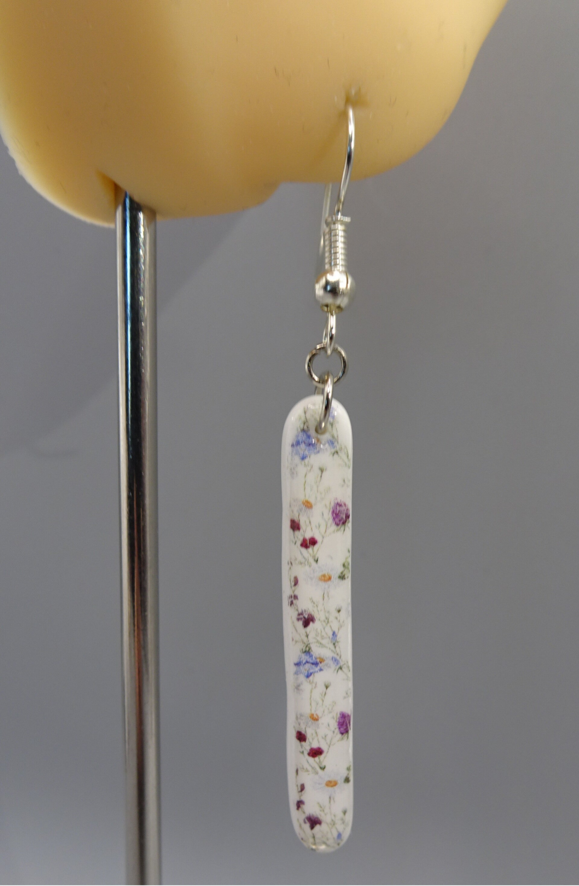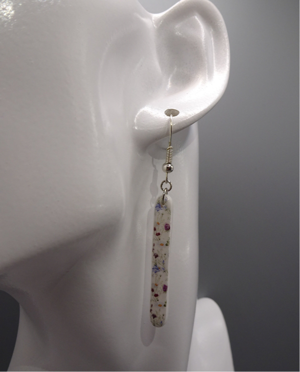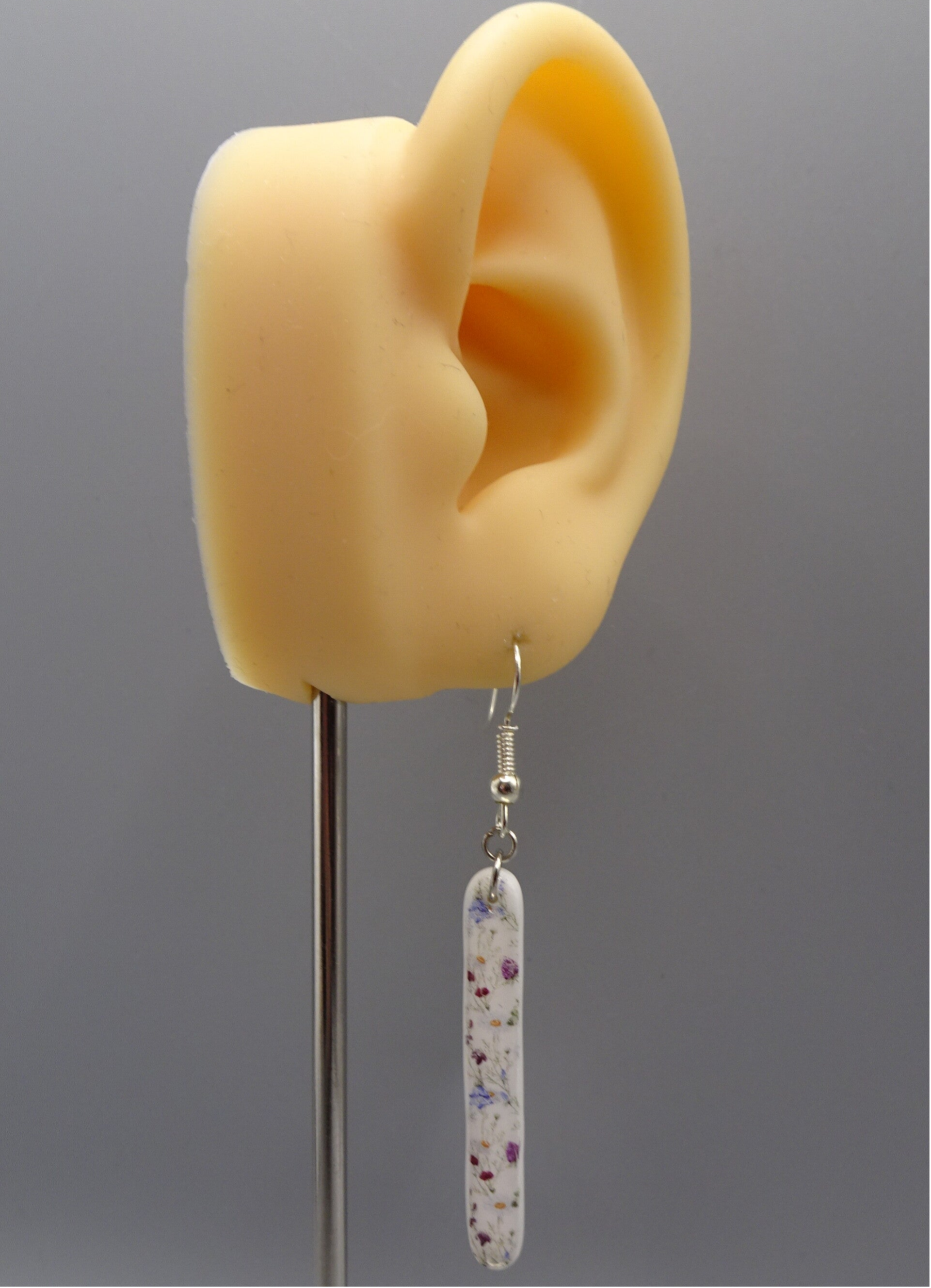 La base de la boucle d'oreille est blanche sur laquelle est superposé un motif liberty.