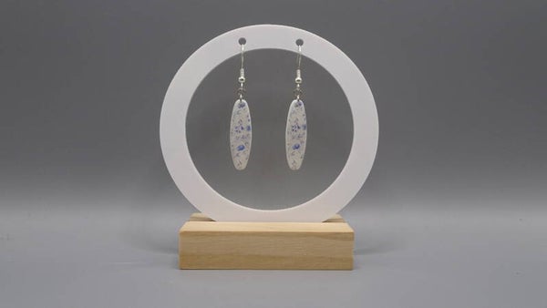 La base de la boucle d'oreille est blanche sur laquelle est superposé un motif liberty.