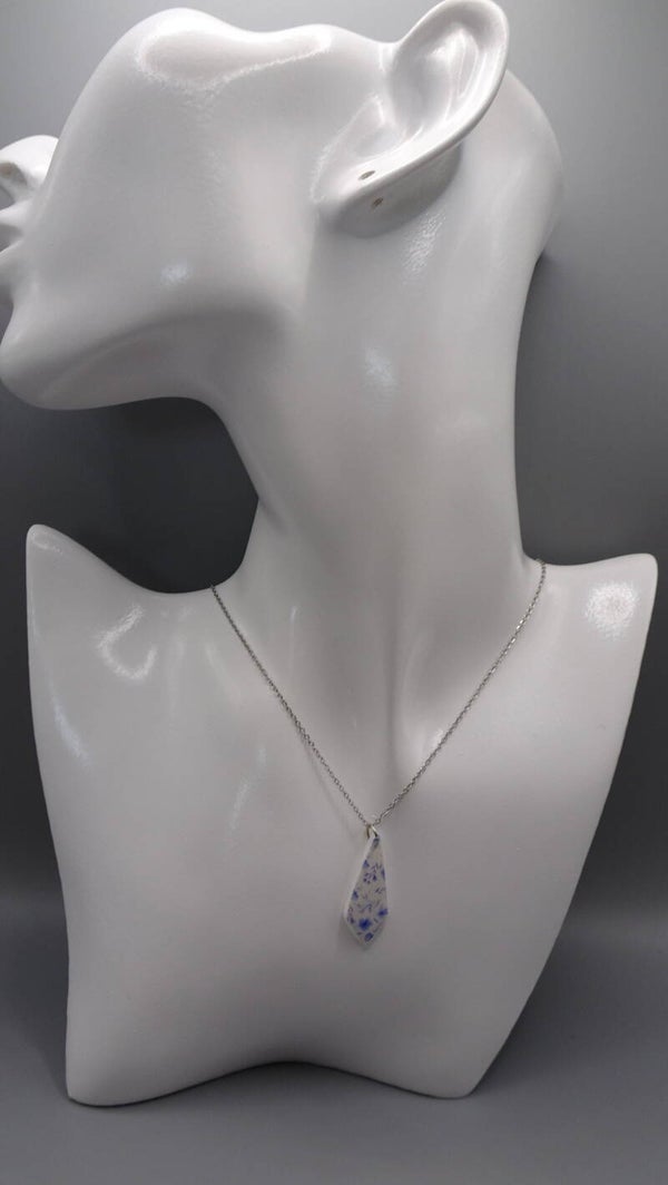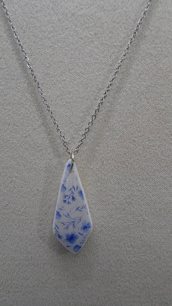 La base du pendentif est blanche sur laquelle est superposé un motif liberty.