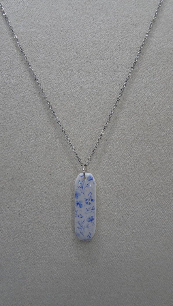 La base du pendentif est blanche sur laquelle est superposé un motif liberty.
